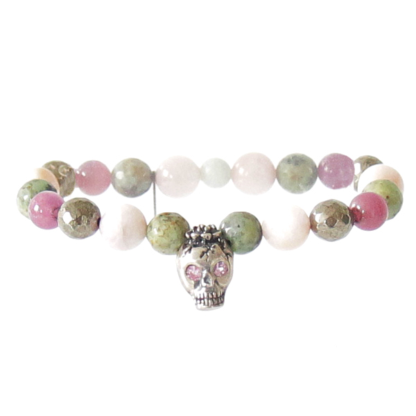 Le Bracelet Turquoise et Petit Bob Argent en perles de Turquoise africaine, Quartz, Pyrite et Rubis est adroable. On aime la vanité aux yeux de tourmaline :