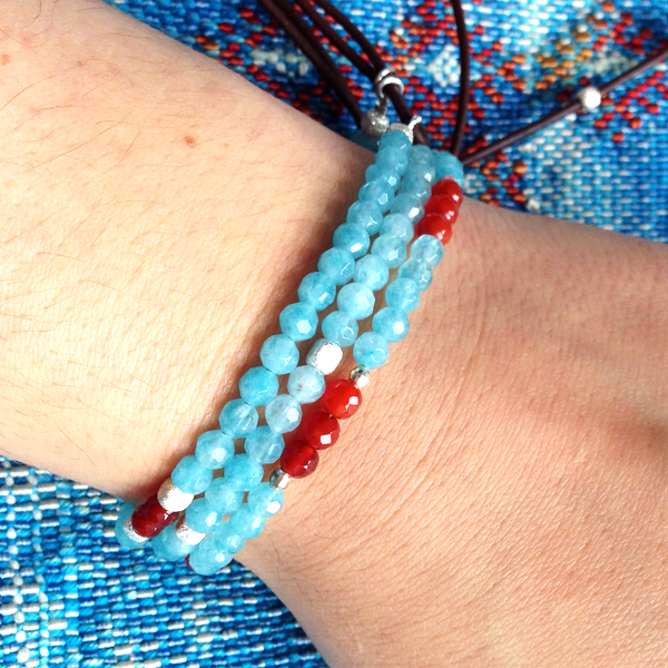 Trois modèles inédits ont été créés en exclusivité pour Matemonsac en perles d’agate bleue et rouge mais aussi d’argent.
