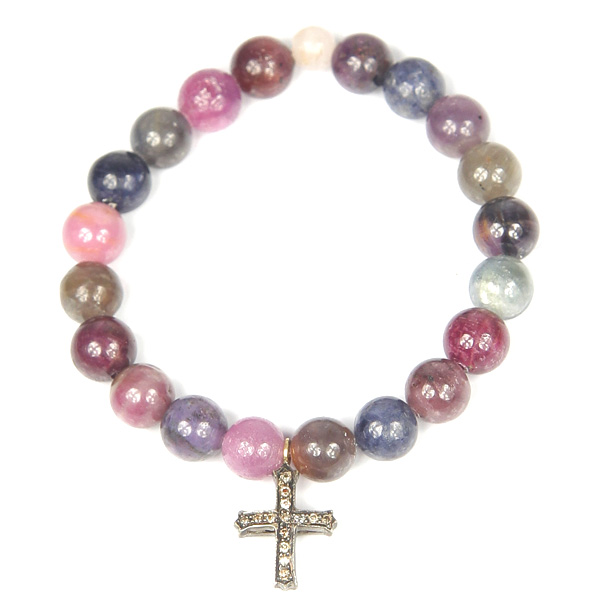 Le bracelet Rosa Cross en Diamants et perles de Rubis et Saphir :