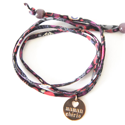 Un bracelet « Maman Chérie » en plaqué or et tissu liberty :
