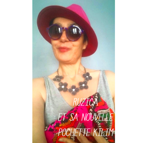 Elle a tout de suite été conquise par les pochettes Kilim et leurs jolies couleurs ! Elle est repartie avec un modèle unique aux pompons rose fluo et nous a envoyé un selfie dès le lendemain avec son achat.Merci Ruzica, c’est adorable de votre part.