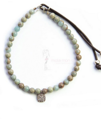 Elle en possède en perles d’opale, en perles d’oeil de tigre, de lapis lazuli et même en perles d’os avec une planète en argent pavée de diamants.