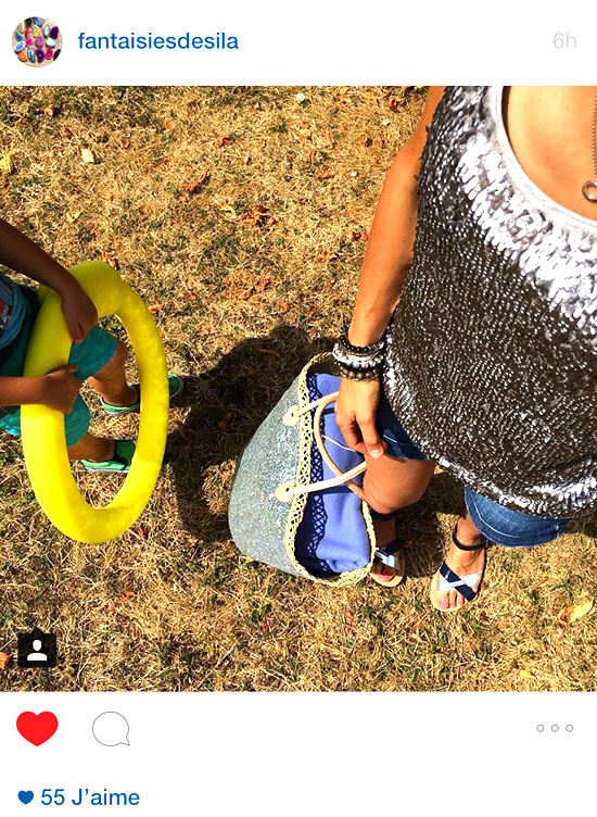 Notre cabas de plage à paillettes argent est sur Instagram !