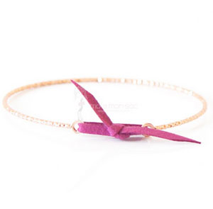 Jonc martelé en plaqué or rose et nubuck violet Paloma Stella