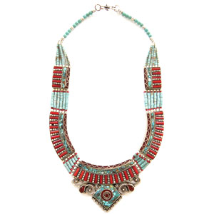 Collier Ethnique Cornaline et Turquoise – Matemonsac – 89€