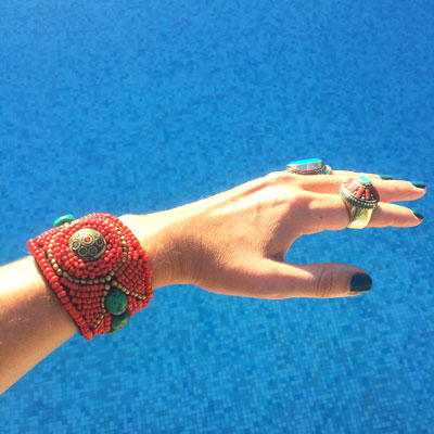 Manchette Ethnique Cornaline et Turquoise – Matemonsac – 49€