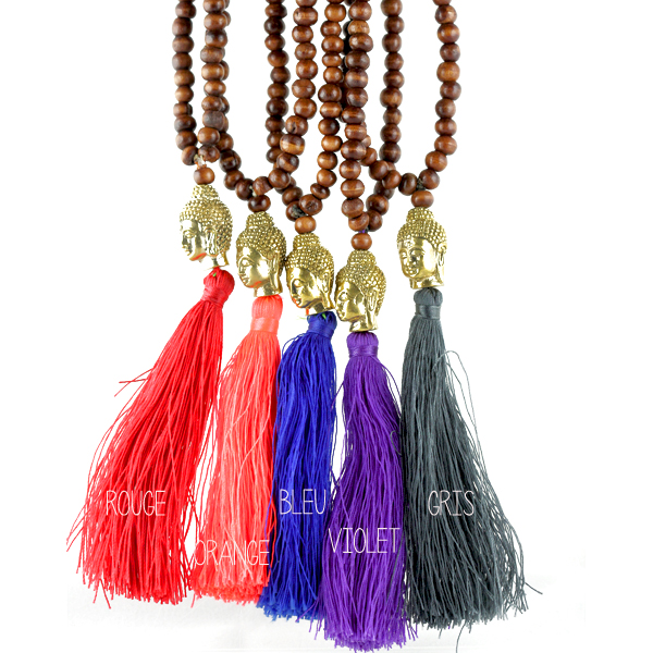 Avec des perles en bois noir, brun ou beige et son adorable tête de Bouddha, ces colliers sont ethniques et boho à souhait !