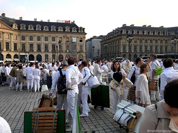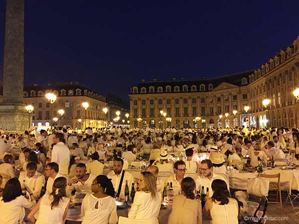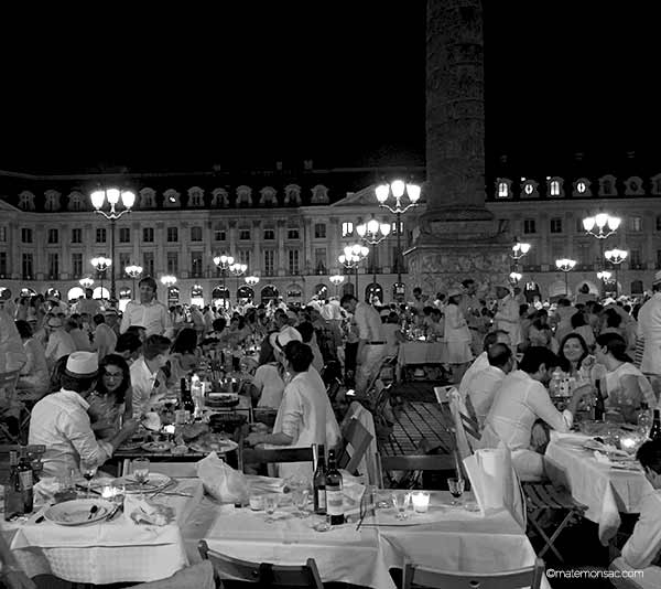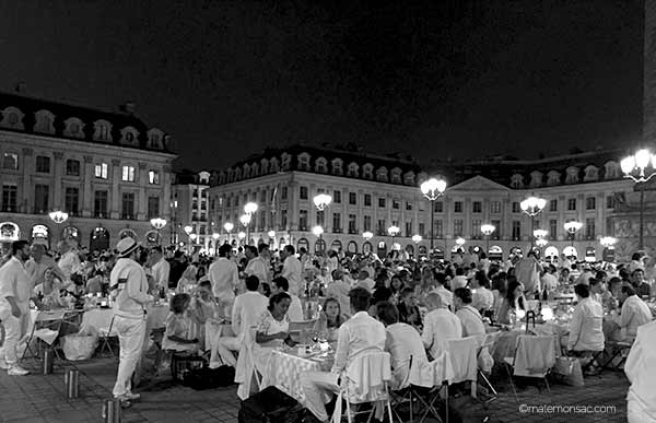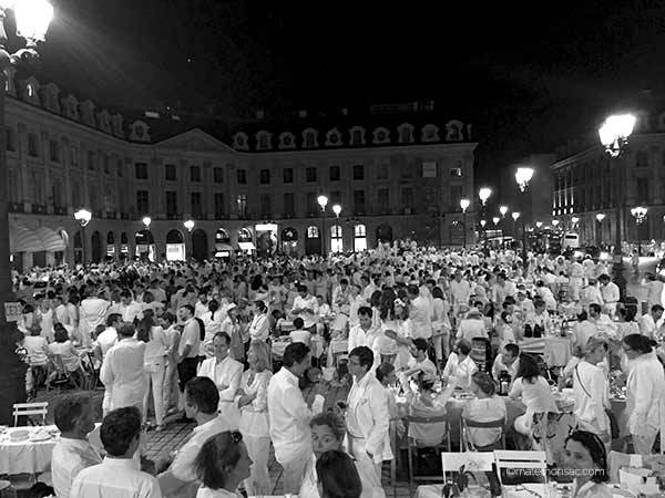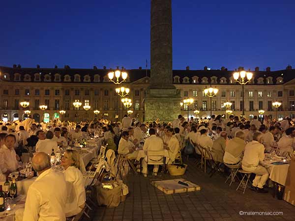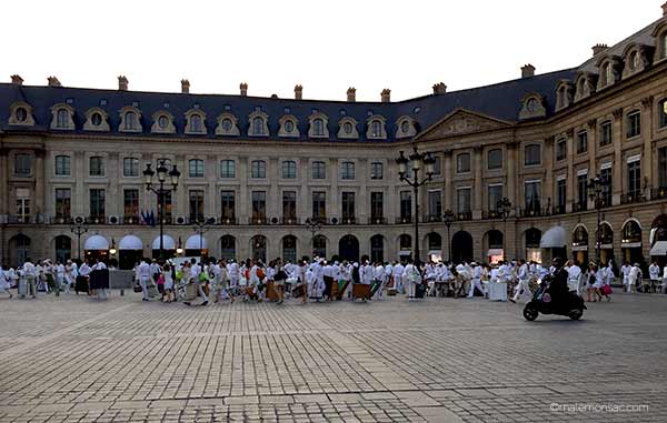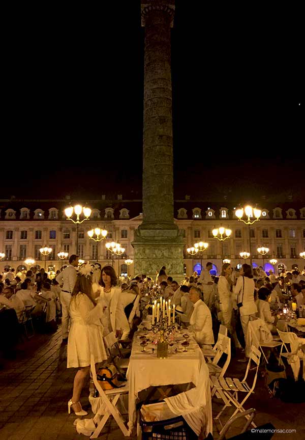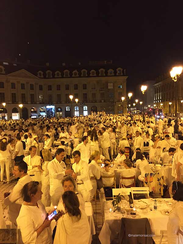 C’est avec un grand bonheur que nous nous sommes rendus au fameux Dîner en Blanc de Paris qui a lieu une fois par an en juin. Cette fois encore nous ne connaissions pas le lieu du dîner jusqu’au dernier moment. Ce fut magique de découvrir que le lieu était Place Vendôme, au pied de l’hôtel Ritz qui devait rouvrir ses portes quelques jours après.