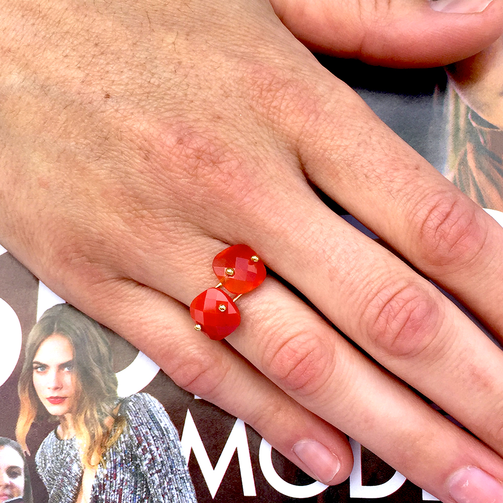 Les bagues de la créatrice de bijoux parisienne Paloma Stella sont à croquer !! A porter 2 par 2 comme sur nos photos, elles sont faciles à assortir à vos tenues. Pour un prix raisonnable de 42 euros chacune, vous pouvez ainsi en changer au gré de vos humeurs ou de votre tenue ! C’est chouette non ?