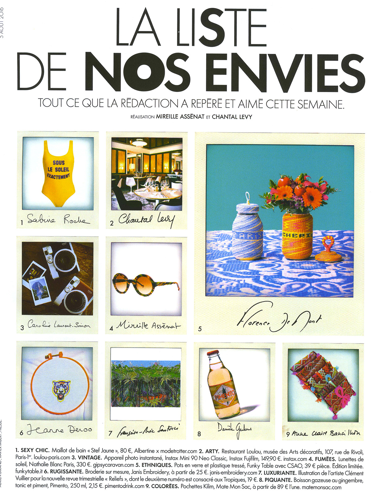 Les membres de la rédaction élisent chaque semaine la « liste de nos envie », faisant part des coups de coeur des journalistes. Celle du mois d’août met à l’honneur nos pochettes réalisées en tissu kilim, leurs couleurs vives sont parfaites pour finir l’été en beauté!