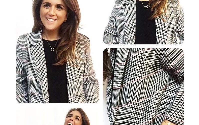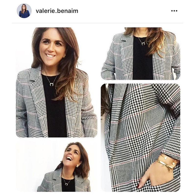 Les bijoux de Paloma Stella sont chics et raffinés, discrets et élégants à la fois. Elle les porte à merveille et avec un immense sourire qui lui va si bien sur une veste en pied de poule ;-).