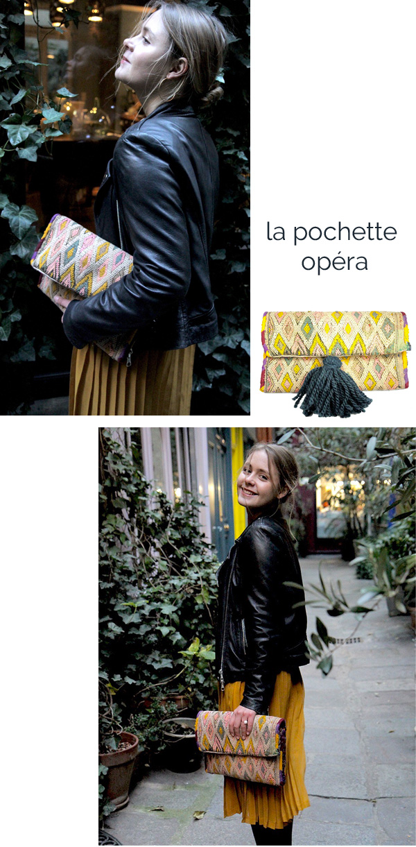 Ici nous avons trouvé que la pochette kilim Opéra de Maud Fourier permettait de donner la touche ethnique chic qui lui manquait.
