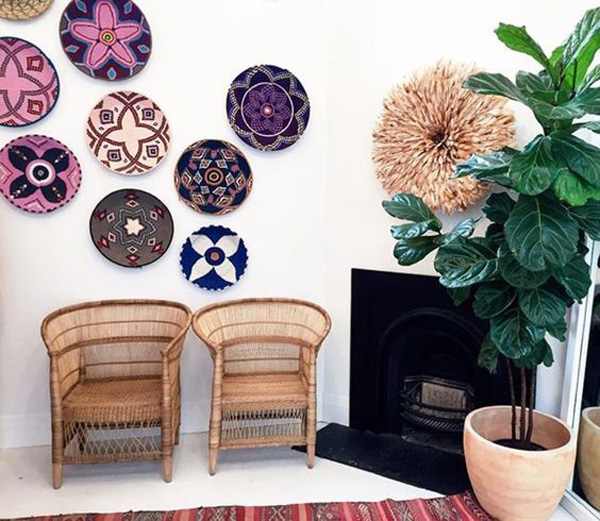 Les corbeilles berbères, à l’origine vouées à contenir du pain, se révèlent être de superbes objets de décoration bohème. On les adore en centre de table, mais aussi posées sur un meuble et même…accrochées au mur !