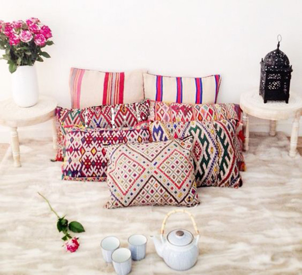 L’aspect ludique de la décoration ethnique, c’est qu’elle se sied à merveille à l’accumulation. Vous pouvez – vous devez ! – mixer les couleurs, les motifs, les influences, les matières…