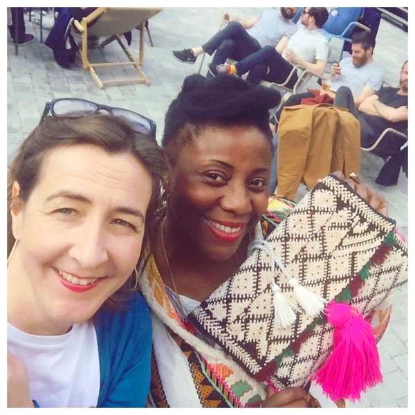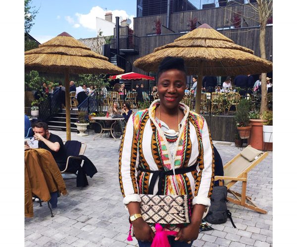 Cette pochette de Maud Fourier Paris est totalement en accord avec le look d’Aline Afanoukoé, pointu et coloré !