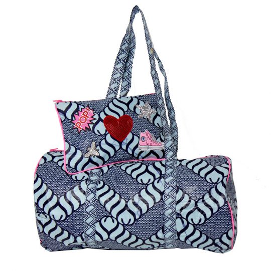 Vous choisissez le tissu (coton uni, coton imprimé wax ou tissu upcyclé à carreaux) puis le motif qui sera imprimé (My Yoga Bag, My Pilates Bag, My Gym Bag ou une initiale !).