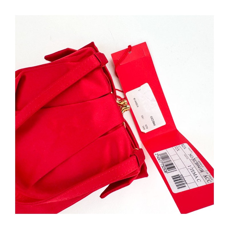 Mini Sac Pochette de la marque Valentino en satin rouge à volants de seconde main en parfait état.