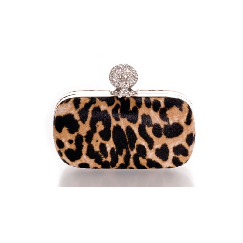 Minaudière Yves Saint Laurent en cuir pony façon léopard en parfait état. Un mini sac à porter en soirée, lors d'un mariage ou d'un cocktail. Cette minaudière contiendra votre rouge à lèvres et vos clés. Circa 2008.